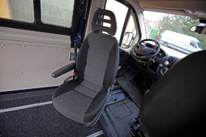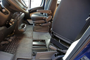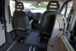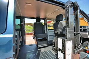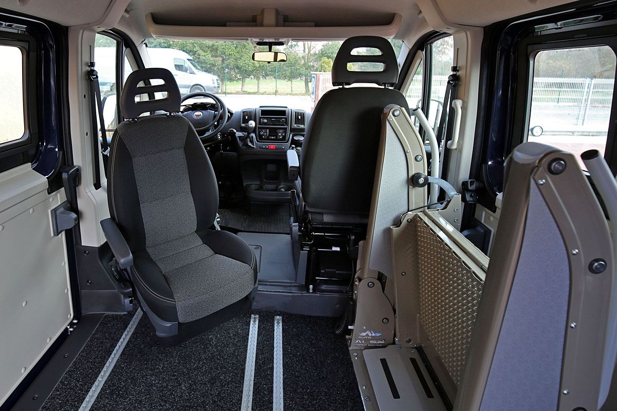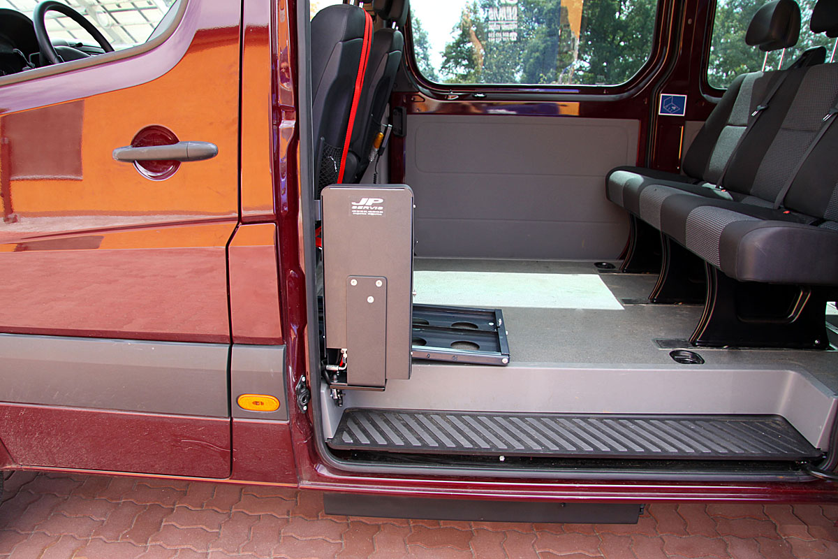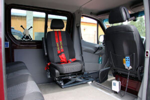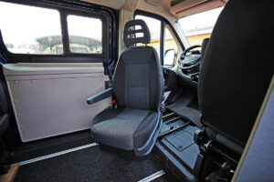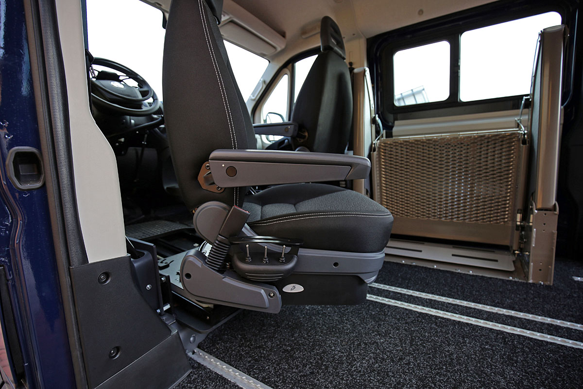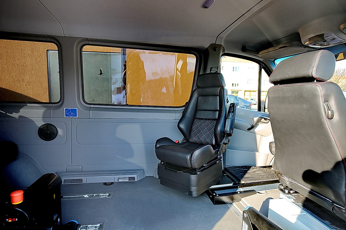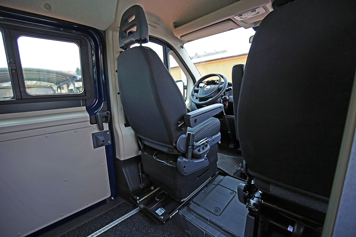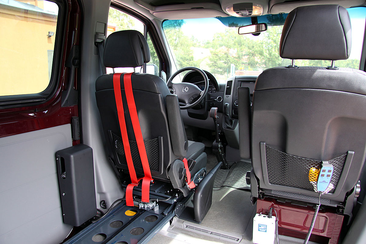 Úprava usnadňuje přemísťování tělesně postižené osobě na místo řidiče či spolujezdce v dodávkovém voze, bez nutnosti vynaložení jakékoliv námahy.