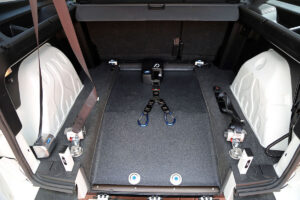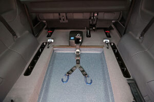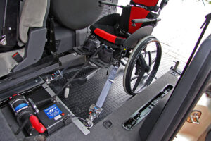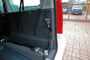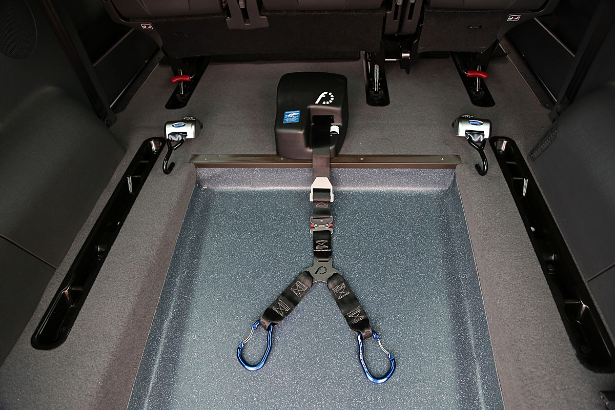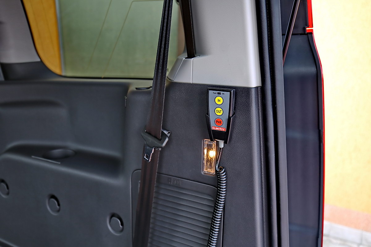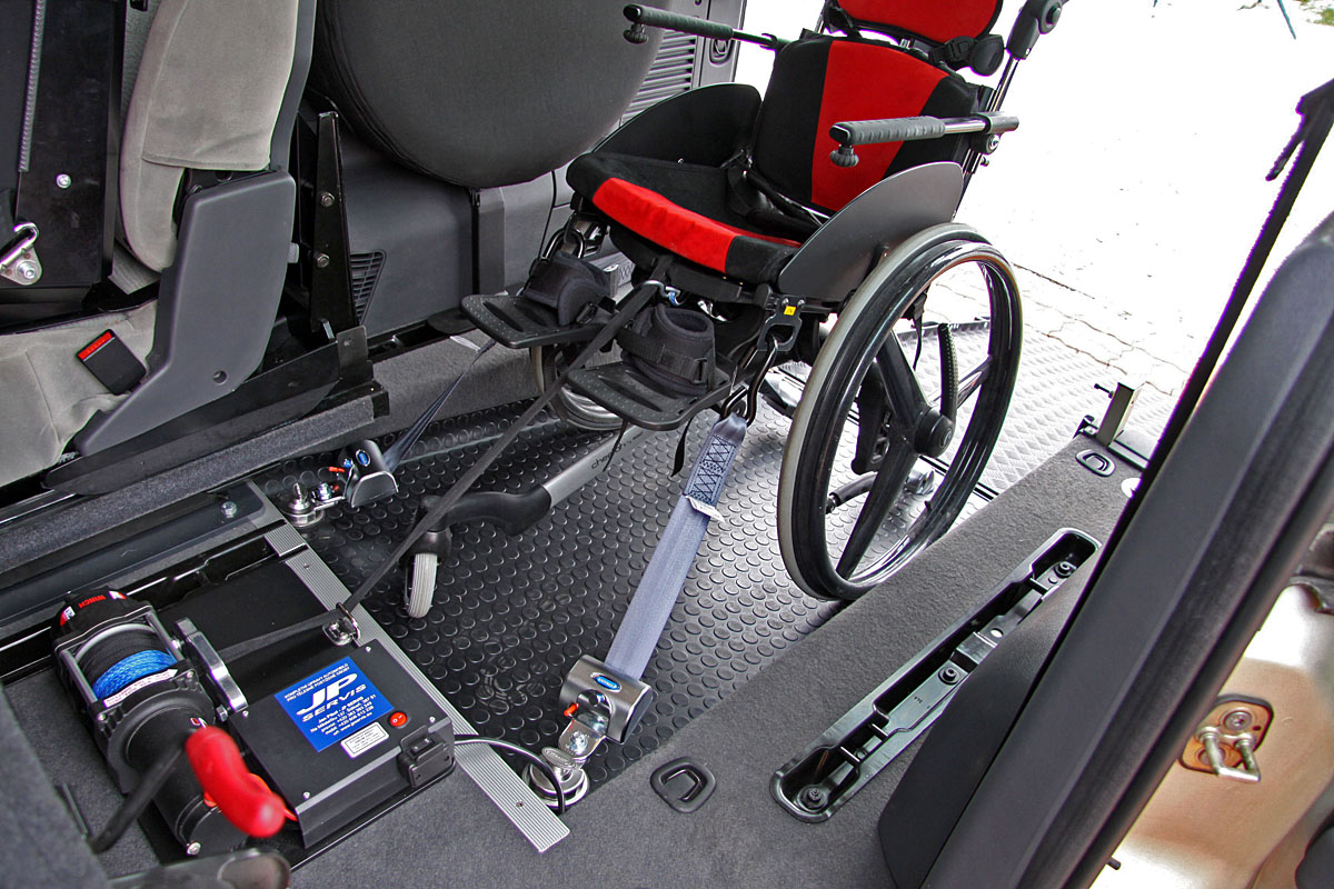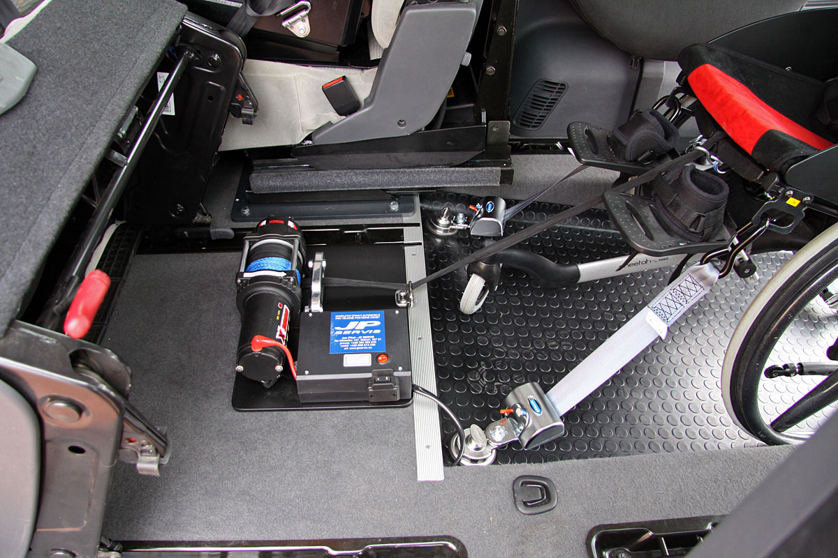 – Navíjecí zařízení ve voze nezabírá téměř žádné místo. – Zařízení lze nainstalovat do většiny typů vozů. – Invalidní vozík i vozíčkář musí být vždy ve vozidle zajištěn schválenou upínací soupravou.