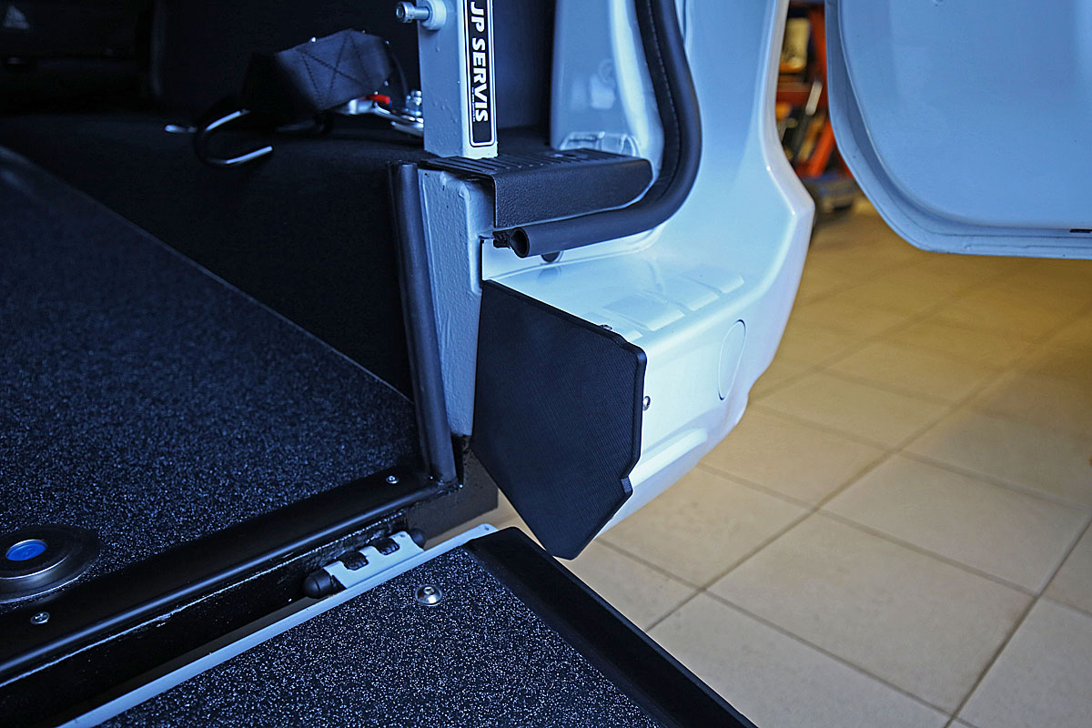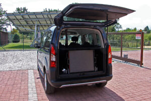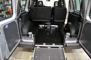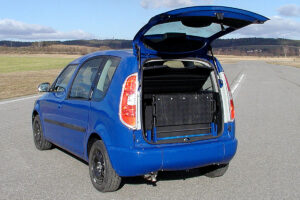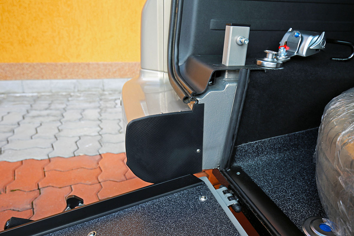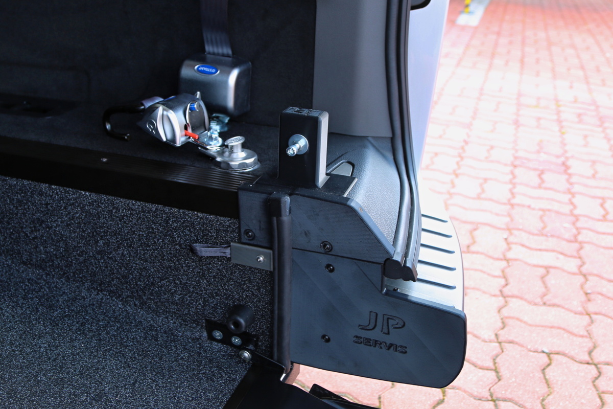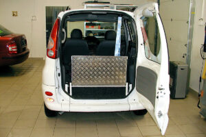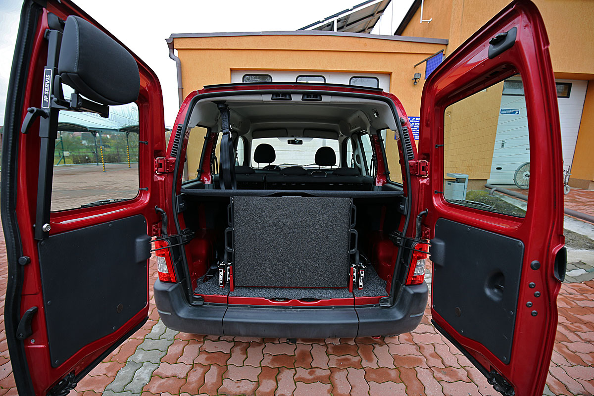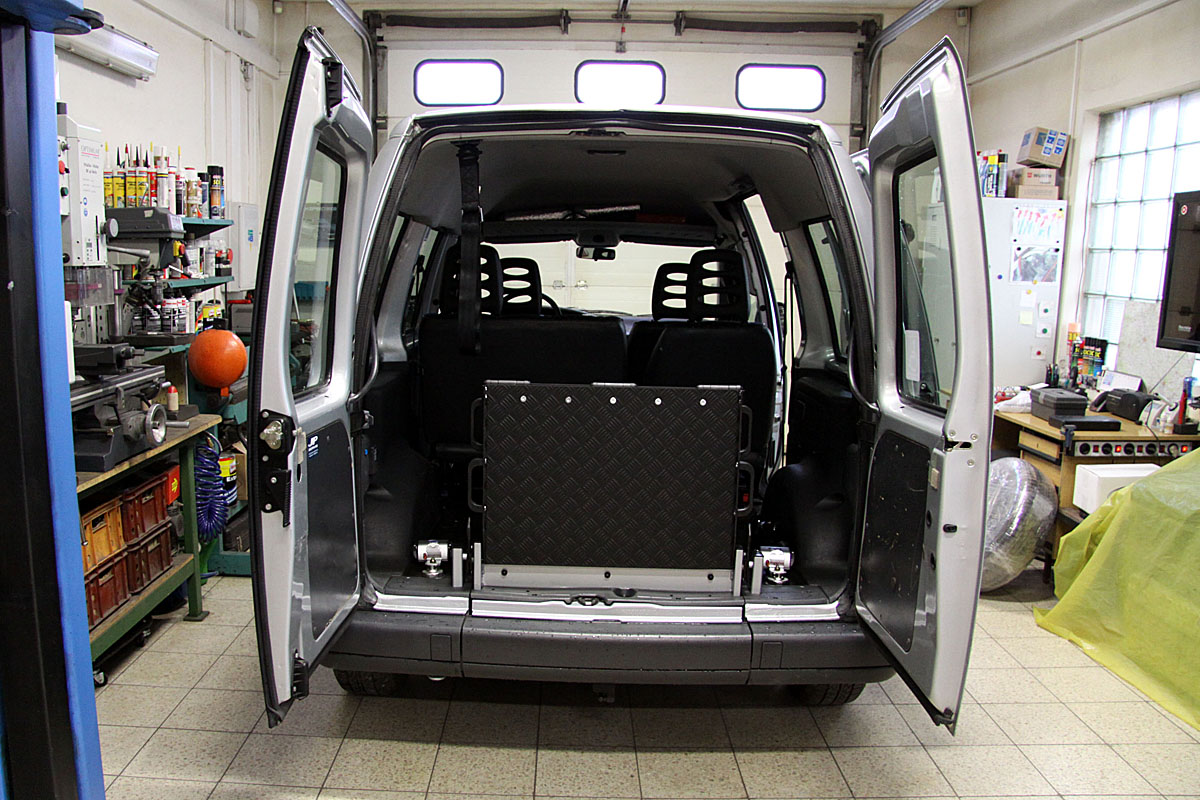 Jedná se o individuální úpravu automobilu pro převoz tělesně postižené osoby na invalidním vozíku (popřípadě pouze vozíku) v zadní části vozu.