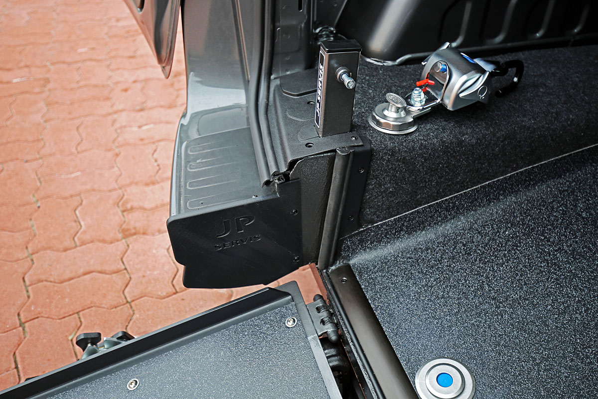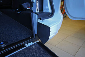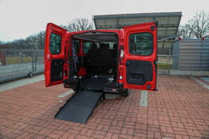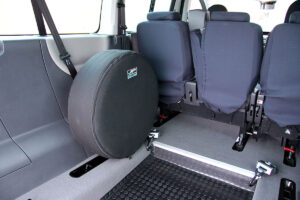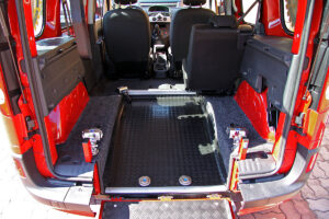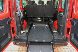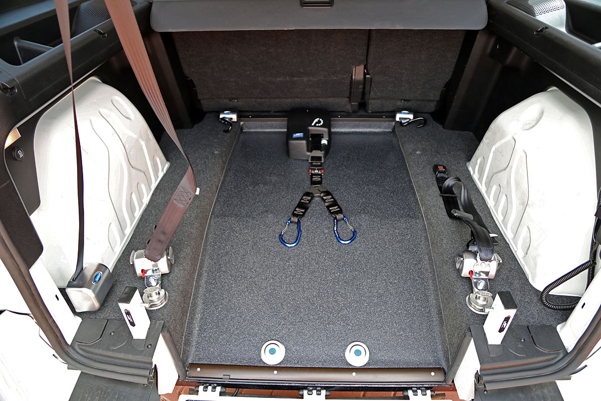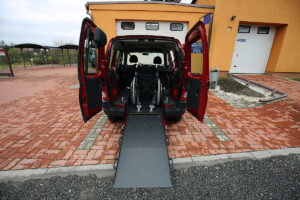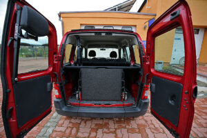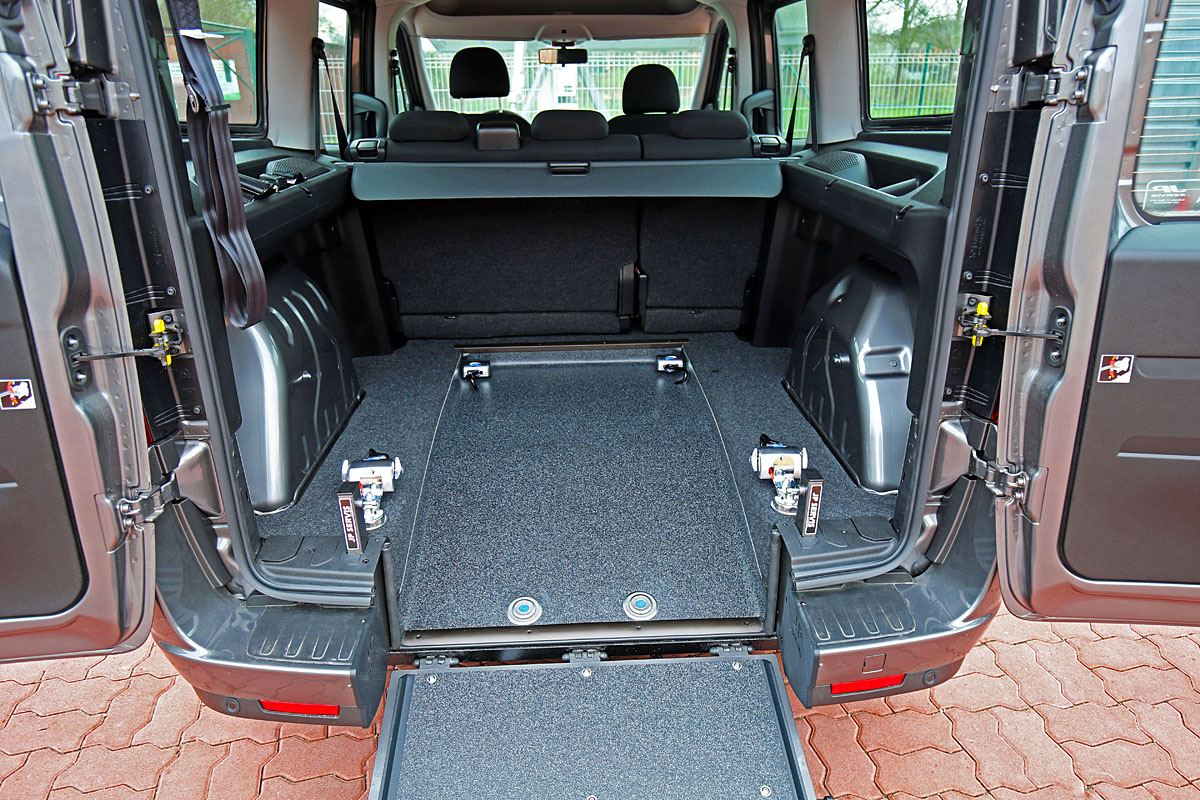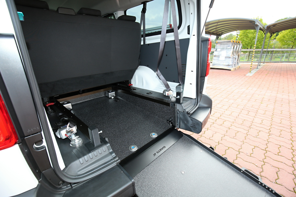 U vozu je snížena podlaha, namontována rampa a nainstalované upínací zařízení. To vše při zachování zadních sedadel.
