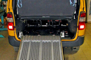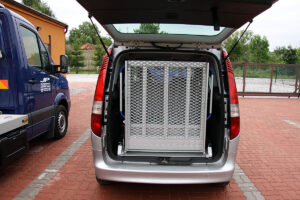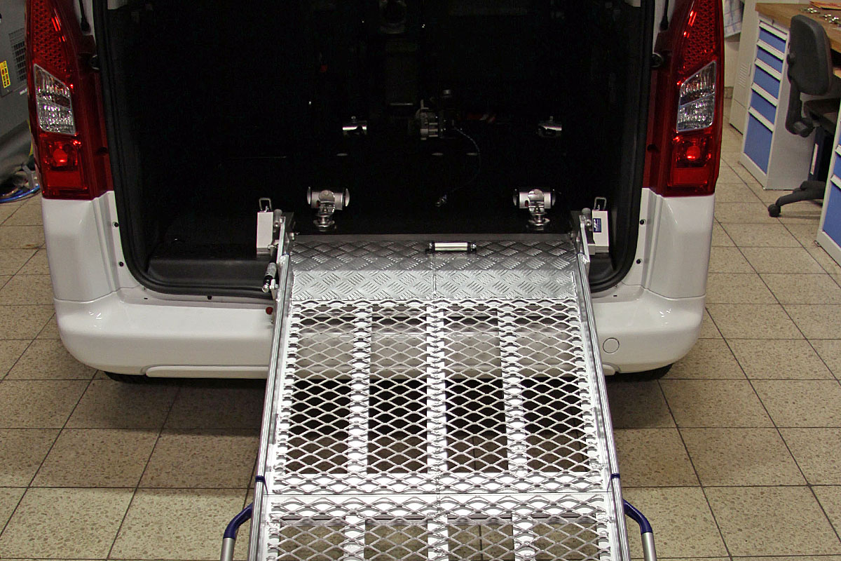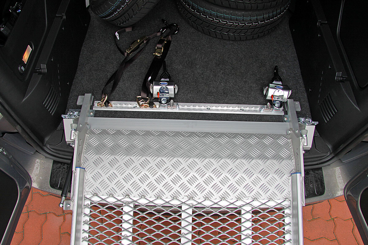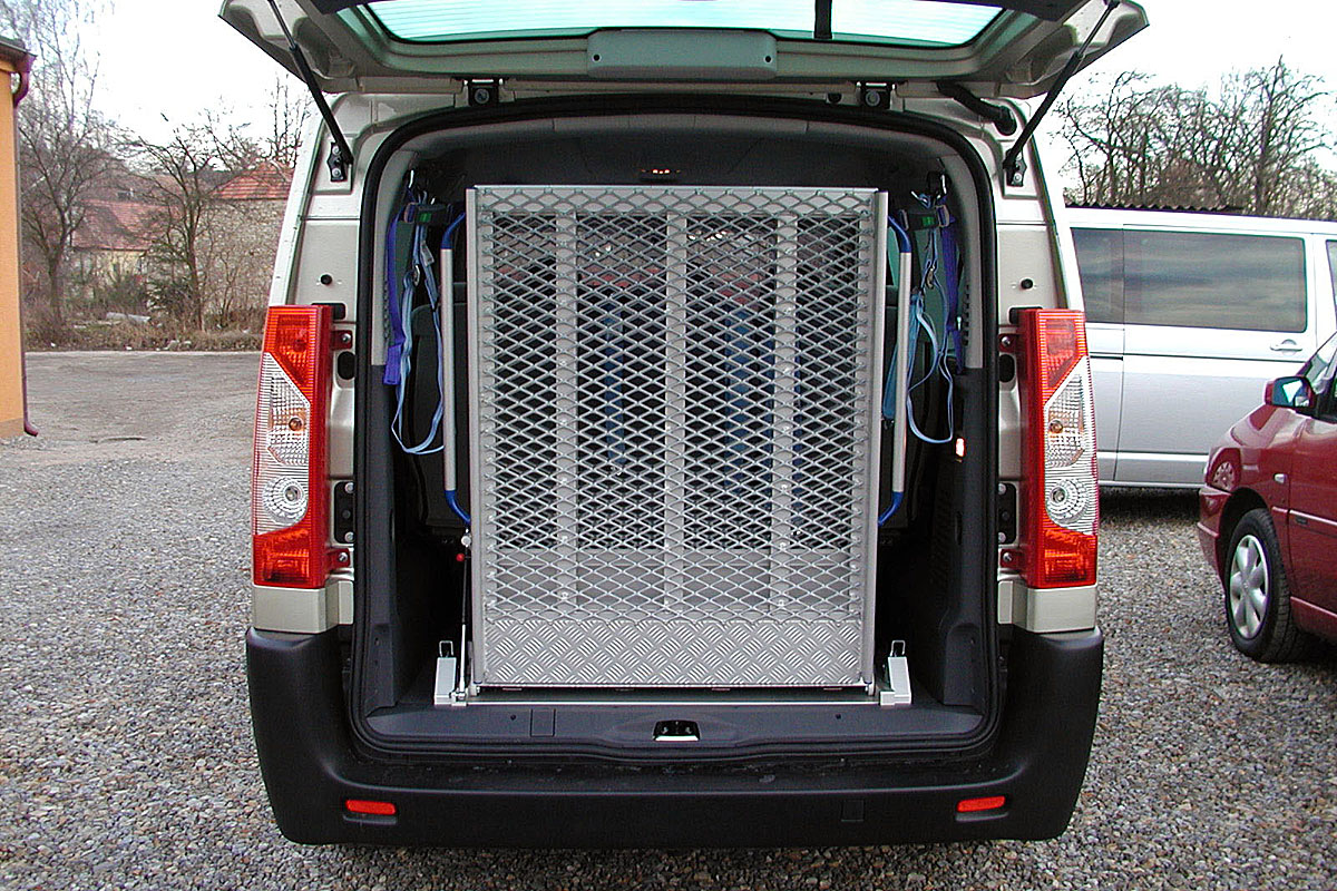 Toto zařízení umožňuje tělesně postižené osobě vjet na invalidním vozíku do zadní části vozu bez nutnosti přesedání, popřípadě nakládání samostatného vozíku a jiných ortopedických pomůcek do nákladového prostoru automobilu.
