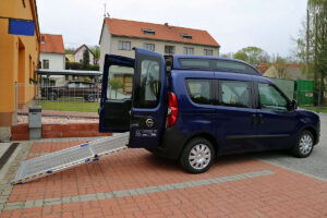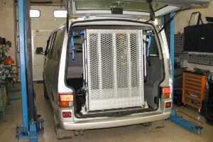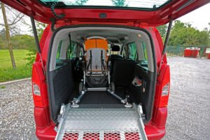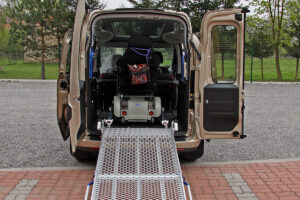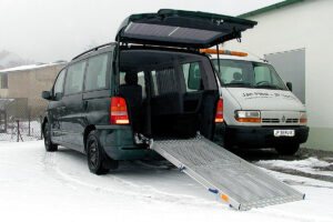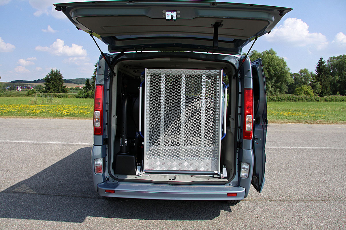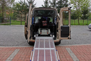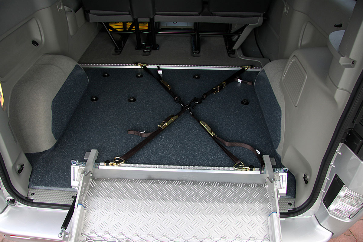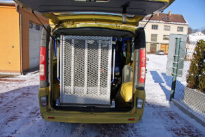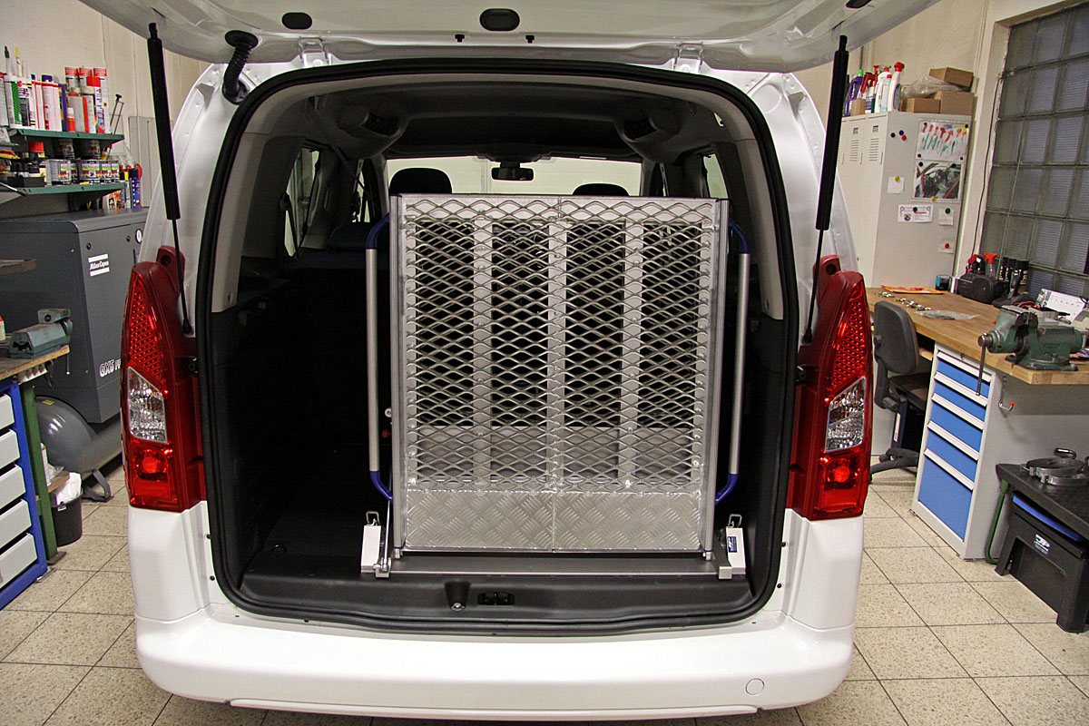 Toto zařízení umožňuje tělesně postižené osobě vjet na invalidním vozíku do zadní části vozu bez nutnosti přesedání, popřípadě nakládání samostatného vozíku a jiných ortopedických pomůcek do nákladového prostoru automobilu.
