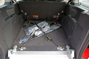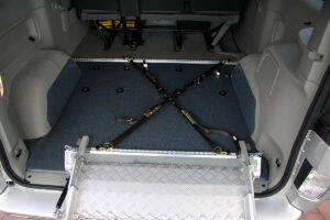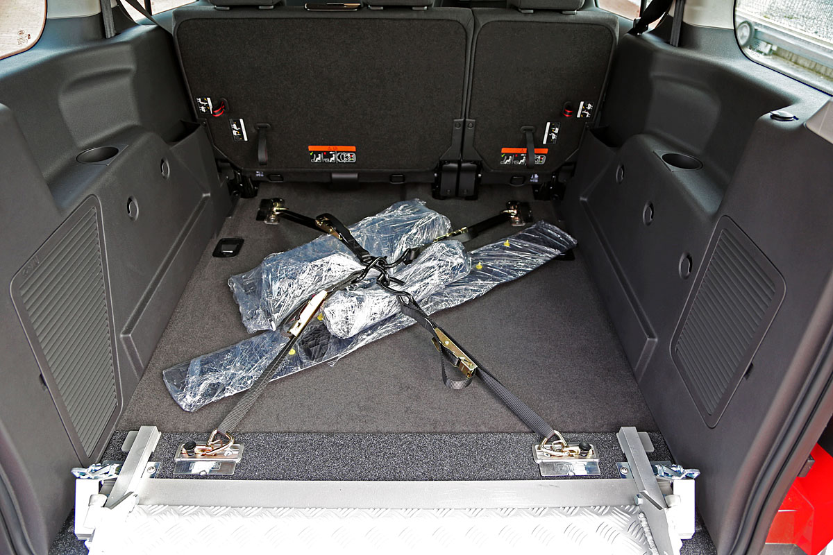 Invalidní vozík musí být vždy ve vozidle zajištěn zádržným systémem (včetně bezpečnostních pasů při přepravě s osobou), schváleného typu.
