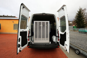 2. Otevřeme a zajistíme zadní dveře vozu v požadované poloze.