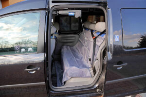 Ochranný kryt zadních sedadel je vhodným doplňkem chránícím zadní sedadla Vašeho vozu před jejich ušpiněním případně poškozením, při nakládání vozíku do automobilu, při nastupování a vystupování postižné osoby do a z vozu.