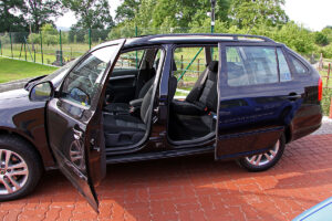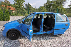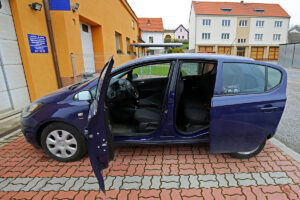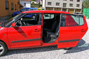 1. Vnitřní originální klikou vozu dveře odjistíme a nepatrně pootevřeme.