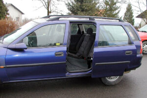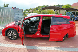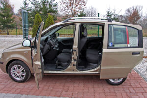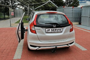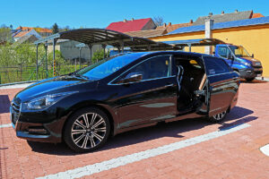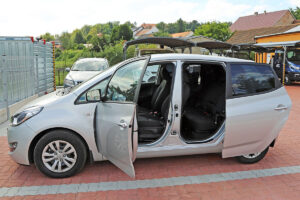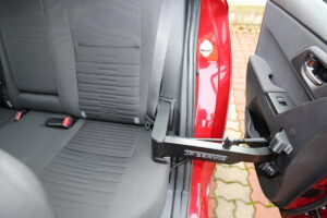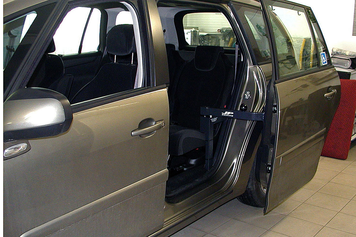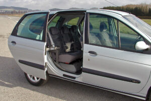 Posuvné dveře JP Systém – elektrické zajistí v kombinaci s elektrickým jeřábkem interiérovým nejjednodušší způsob nakládání mechanického vozíku na místo mezi přední a zadní sedačky vozu.