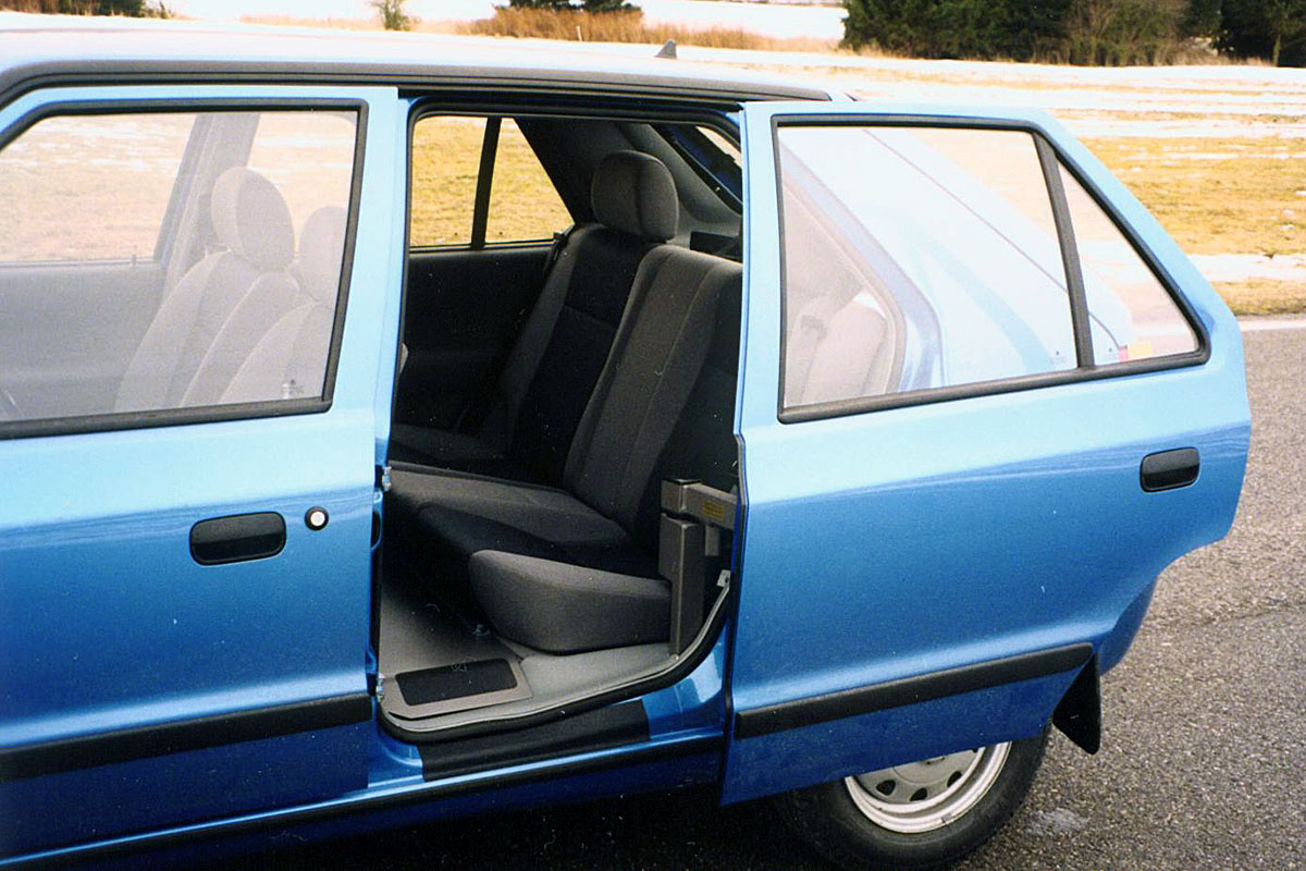 Toto zařízení umožňuje postižené osobě snazší nakládání vozíku do prostoru zadních sedaček vozu.