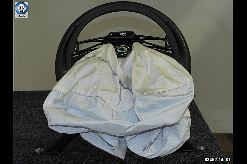 Samozřejmě se porovnává a kontroluje i dráha a směr rozbalování vlastního vaku (zda zástavbou kruhového ovladače nedojde ke změně požadované dráhy a rychlosti vaku) během aktivace. Toto je zaznamenáváno rychlokamerami ze dvou směrů současně (2.000 snímků za sekundu z boku a z čela). Výsledek zkoušky potvrdil bezpečnost tohoto výrobku i v tomto směru. Trochu nás zaskočilo zjištění, že dosud žádná jiná firma dodávající obdobné systémy jiných výrobců nebo vlastní, tuto zkoušku u nás ve zkušebně TÜV SÜD Czech s.r.o. k datu 15. 12. 2014 neabsolvovala?